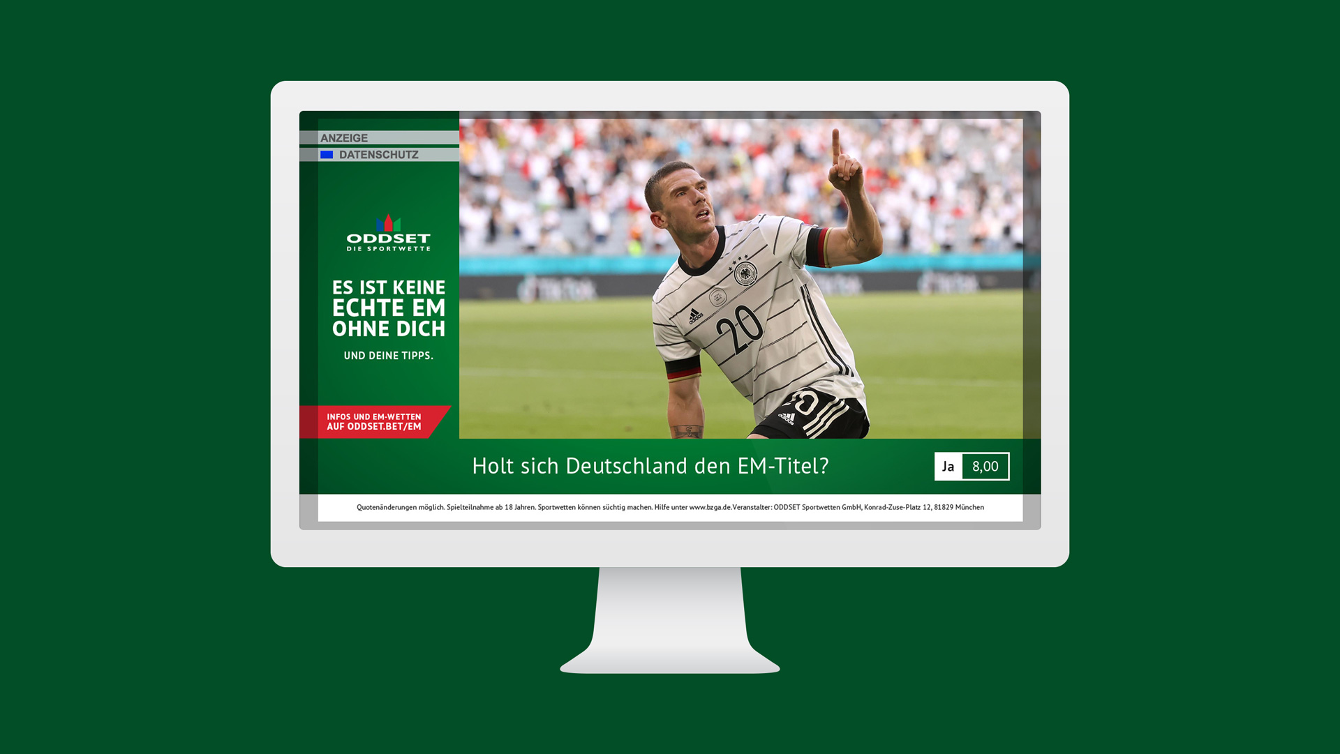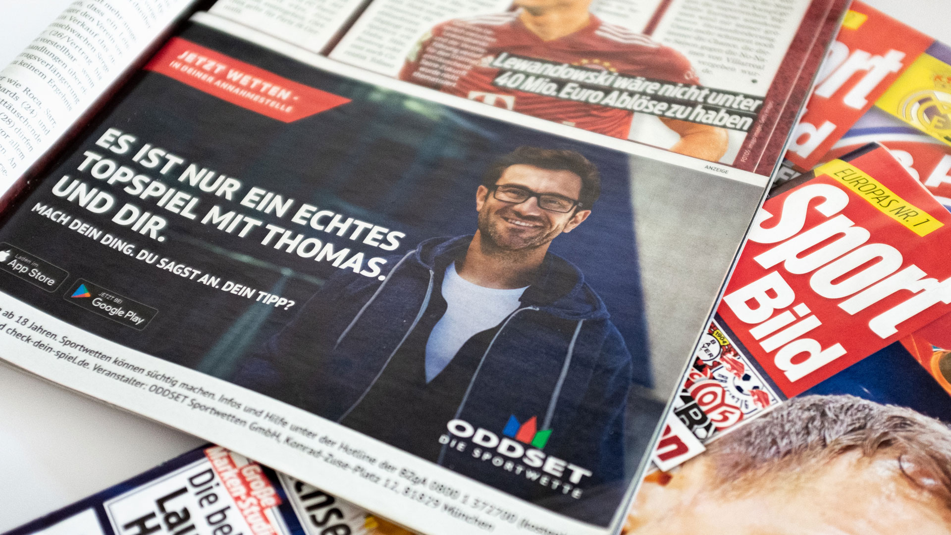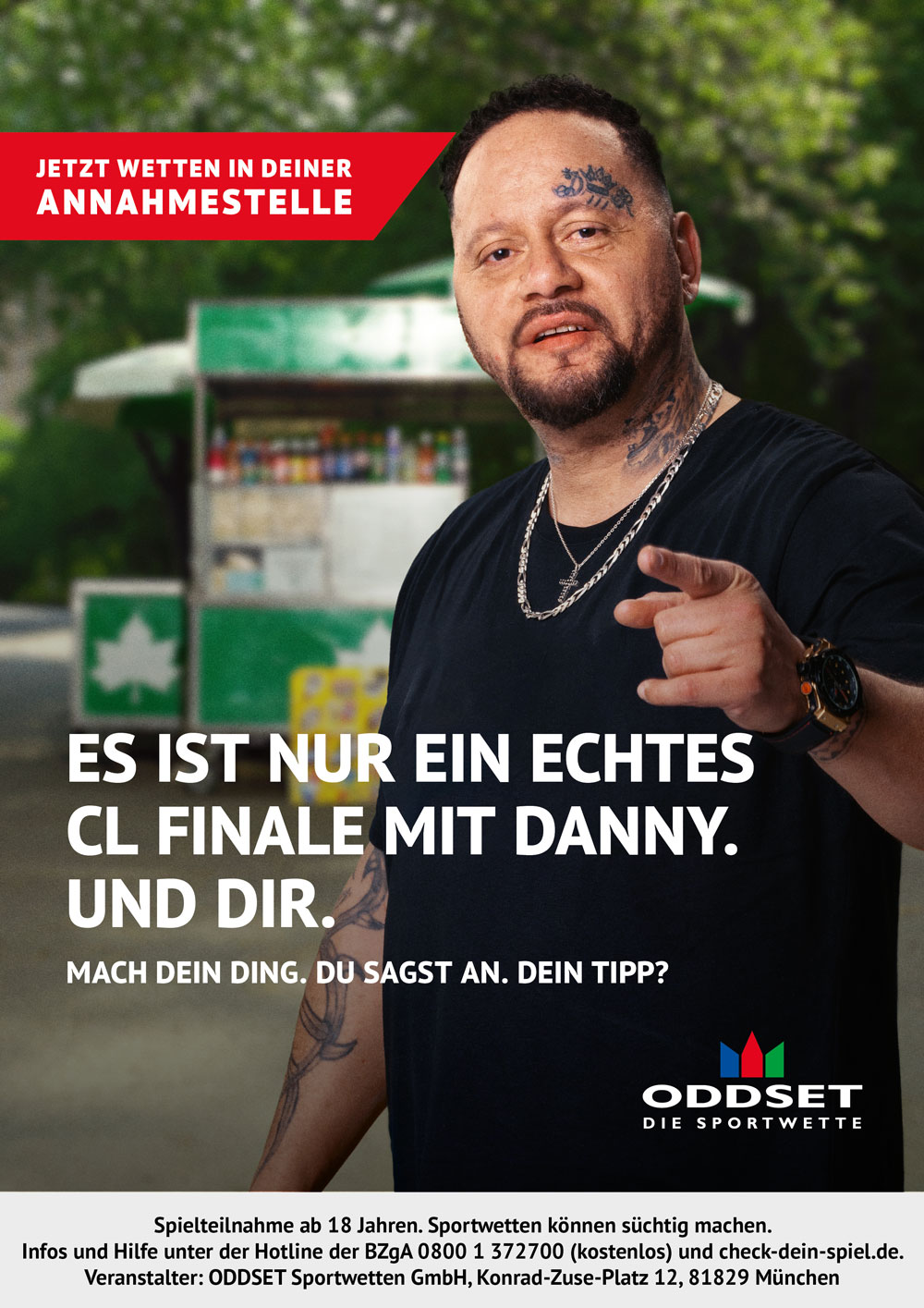 Im Kontrast zu Bet-Riesen aus Übersee, die überwiegend auf jubelnde Fans und Altstar-Testimonials setzen, dreht sich bei ODDSET alles um echte Fans, die den Tippschein seit Jahrzehnten ankreuzen. Während der Pandemie starteten wir zur Fußball Europameisterschaft mit Typo Varianten, bevor wir dann echte Fans an sämtlichen Tankstellen und in auflagestarken Titeln wie Kicker oder Sportbild platzieren konnten. In Funkspots kultivierten wir die vermeintliche Schwäche der Annahmestelle.