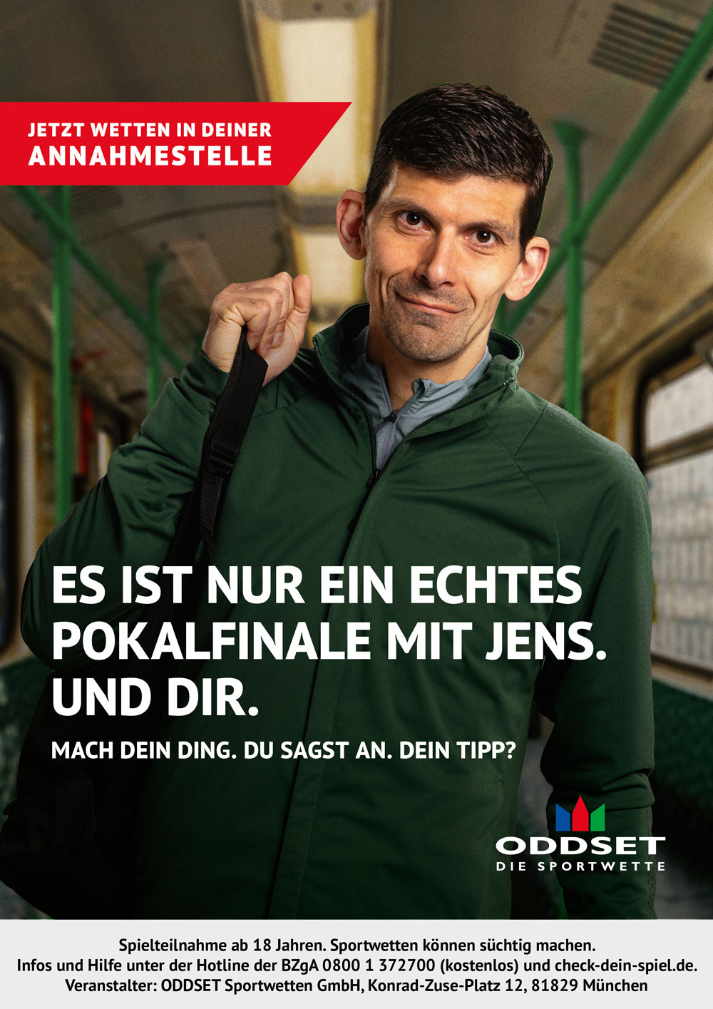Im Kontrast zu Bet-Riesen aus Übersee, die überwiegend auf jubelnde Fans und Altstar-Testimonials setzen, dreht sich bei ODDSET alles um echte Fans, die den Tippschein seit Jahrzehnten ankreuzen. Während der Pandemie starteten wir zur Fußball Europameisterschaft mit Typo Varianten, bevor wir dann echte Fans an sämtlichen Tankstellen und in auflagestarken Titeln wie Kicker oder Sportbild platzieren konnten. In Funkspots kultivierten wir die vermeintliche Schwäche der Annahmestelle.