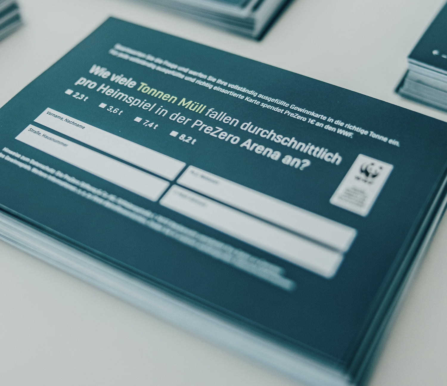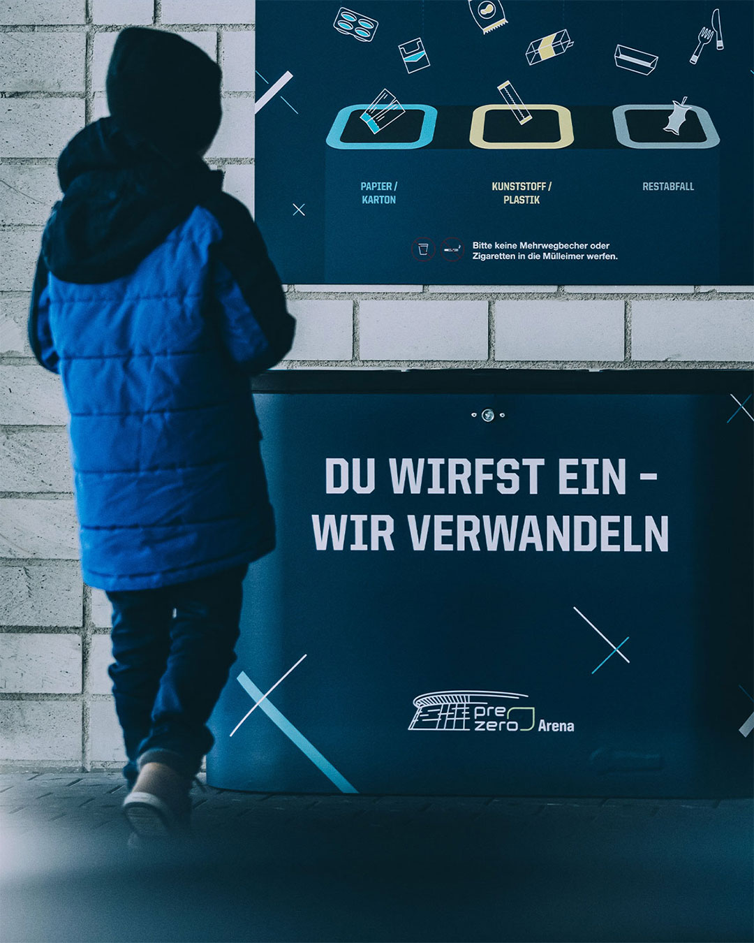 Zusammen mit der TSG Hoffenheim ist PreZero auf dem Weg das erste Zero Waste Stadion der Bundesliga umzusetzen. Alle Abfälle sollen nicht als Müll, sondern als wertvolle Ressource gesehen werden und zu 100% in Kreisläufen wiederverwendet werden. Ein Beispiel: aus Rasenschnitt werden Graspellets und später Autogrammkarten. Auf diese spannende Reise nehmen wir die Fans mit. Unter anderem auf einem interessanten Content Hub und vor Ort an Spieltagen in der PreZero Arena.